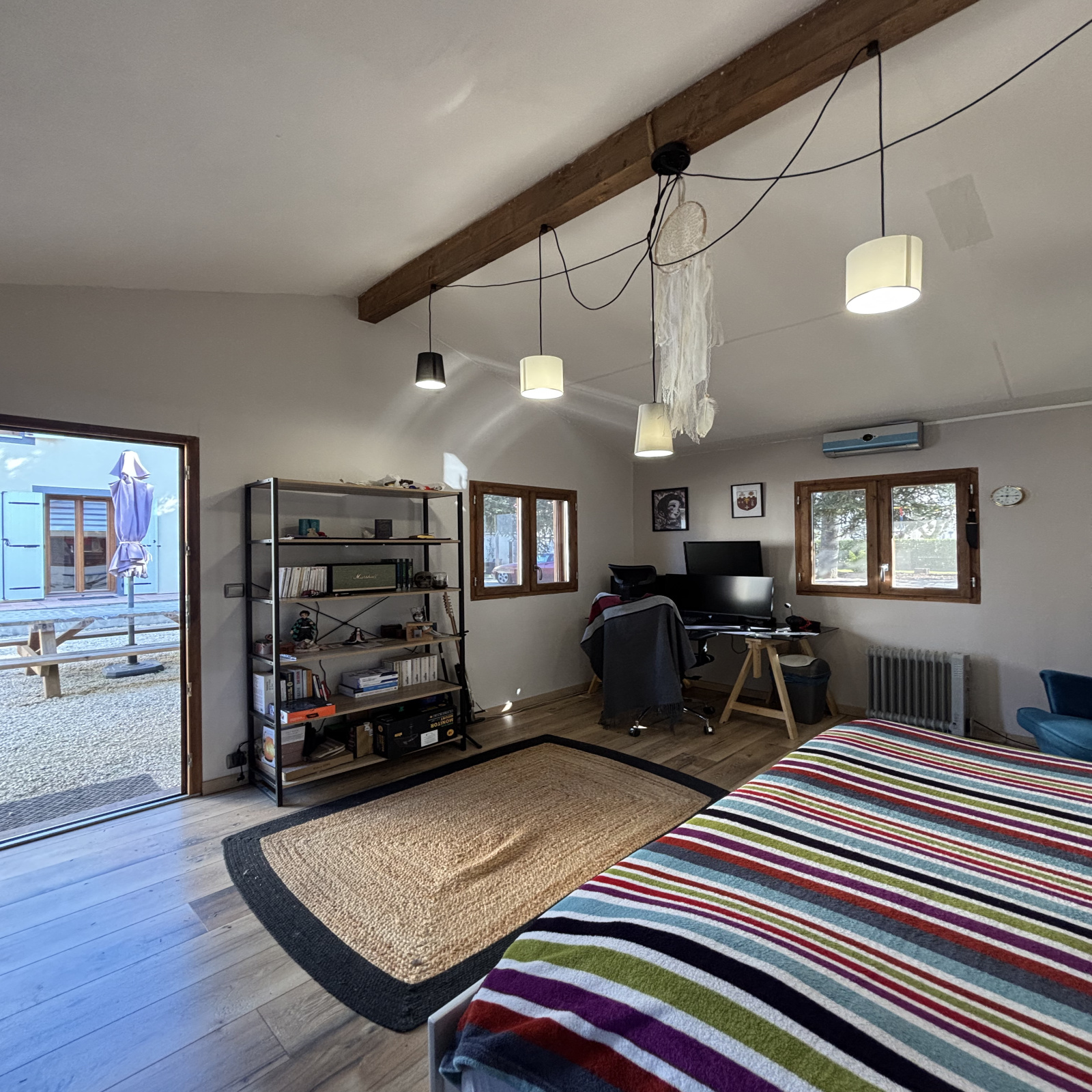 Pendant de longues années, j’ai abrité un atelier de couture. Des tissus, des gestes précis, des créations patientes. Aujourd’hui transformé en chambre parentale, cet espace conserve une atmosphère douce, presque confidentielle. On y dort profondément. On y pense clairement.