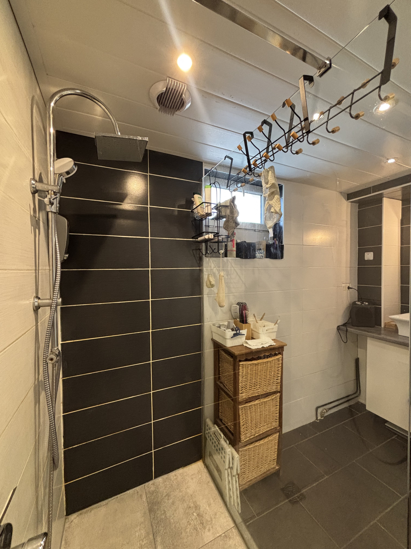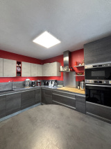 Puis vous glissez vers mon salon et ma cuisine ouverte. Le cœur battant de la maison. On y prépare le dîner tout en racontant sa journée. On s’installe près du poêle à granulés quand le temps fraîchit. On circule naturellement, sans se gêner. La maison respire.